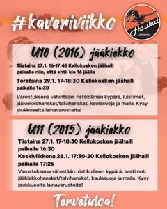 Kaveriviikkoa vietetään kiekkokoulussa, ringettekoulussa, luistelukoulussa sekä jääkiekon U8-U11 ikäluokissa.
